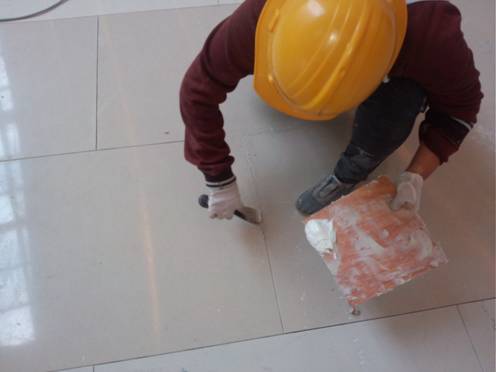 對填縫操作中的一些瑕疵,先清理干凈磚縫,避免黑縫黑邊,然后用相應(yīng)顏色編號的填縫膠補(bǔ)縫。注意工人填膠時需交叉多次填補(bǔ)密實(shí),最后同向涂刮一次,使填縫膠飽滿凸起,防止填縫膠固化收縮下凹,導(dǎo)致后期翻新出現(xiàn)填縫膠凹陷發(fā)黑。