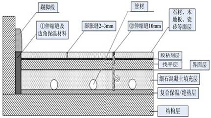 對于地暖工程施工,石材鋪貼工藝須采用“萬峰石材膠軟底法鋪貼”,而其低溫?zé)崴椛涔┡仄阂话阕龇ㄈ缦聢D所示: