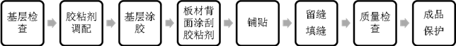 將試鋪板材揭開,在找平砂漿上處于板材四角處加少量膠粘劑(減小空鼓概率);然后使用干抹布或毛刷清理石材粘貼面的浮灰、油脂、鐵銹等影響粘結(jié)的附著物,板背面涂刮膠粘劑其板材邊角膠粘劑需補足并倒角處理 |