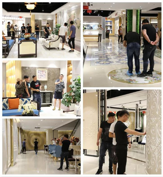 上午九點(diǎn)半,設(shè)計(jì)師們來(lái)到總部展廳參觀(guān),在公司專(zhuān)業(yè)人員的帶領(lǐng)下,詳細(xì)了解了石材的裝飾效果,不禁對(duì)石材的工藝發(fā)出贊嘆,紛紛拿出手機(jī)記錄下這些美輪美奐的作品。