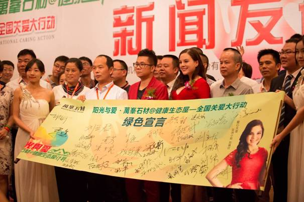 在各位領(lǐng)導(dǎo)以及在場(chǎng)嘉賓的見證下,萬峰石材與廣州映山紅營(yíng)銷策劃?rùn)C(jī)構(gòu)、萬峰石材與北京新陽光慈善基金會(huì)分別進(jìn)行了簽約儀式,并進(jìn)行了活動(dòng)啟動(dòng)儀式,標(biāo)志著“陽光與愛”,萬峰石材@健康生態(tài)屋計(jì)劃全國(guó)關(guān)愛大行動(dòng)正式啟動(dòng)。
