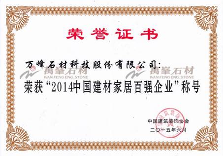 殊榮一:中國建材家居百強(qiáng)企業(yè)