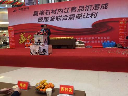 在開(kāi)業(yè)活動(dòng)上,萬(wàn)鑫建材股份有限公司董事長(zhǎng)肖付友先生指出,借著奢品館落成的契機(jī),石材與萬(wàn)鑫建材的合作達(dá)到了一個(gè)新的高度,而他,將會(huì)把國(guó)內(nèi)頂級(jí)人造石石材帶到內(nèi)江的千家萬(wàn)戶(hù)中,讓廣大消費(fèi)者體驗(yàn)到高端石材的裝飾效果。