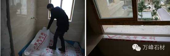 在采訪過程中,微記者跟隨許總來到“愚池灣”高檔小區(qū)中,隨機(jī)挑了數(shù)家正在施工中的項(xiàng)目來查看,感受到了許總對(duì)于細(xì)致化服務(wù)的高準(zhǔn)則要求。在施工場(chǎng)地中,涉及到石材產(chǎn)品的施工,已經(jīng)完成了的位置,均有厚厚的墊子做好防護(hù)工作,以免受到其他施工環(huán)節(jié)的破壞。