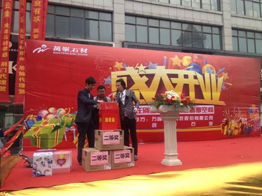 石材公司代表營銷中心副總經(jīng)理蘇光譜先生,鑫晶石業(yè)董事長周坤先生,以及裝飾設(shè)計界、石材陶瓷界、建材界等眾多領(lǐng)導(dǎo)嘉賓朋友們,一同出席了此次慶典,共同祝賀石材在鄂州市場的閃亮登場!