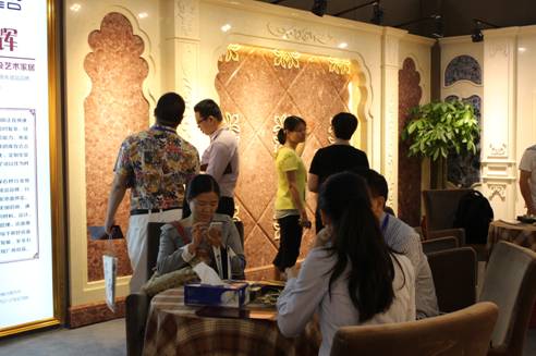 本屆陶博會(huì),阿蔓蒂在陶瓷總部基地的17、20、25號(hào)位置中精彩亮相,展現(xiàn)出5款高端背景墻。其產(chǎn)品的精美、設(shè)計(jì)的精細(xì),吸引了眾多商家的駐足欣賞。