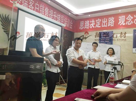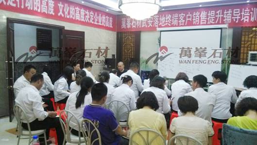 5月27日,石材武安市場專項開展了“銷售提升輔導(dǎo)培訓(xùn)”,旨在提升武安地區(qū)一線銷售人員的綜合能力,為下一步的市場開拓夯實基礎(chǔ)。活動邀請到著名營銷導(dǎo)師鄧煜先生親臨現(xiàn)場,奉獻(xiàn)了一場深入淺出的思想盛宴。