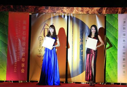 靚麗的模特為大家展示石材各具特色的產(chǎn)品
