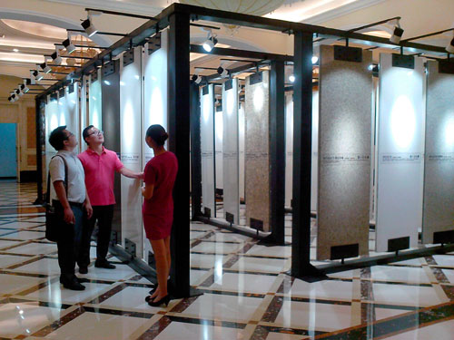 通過應(yīng)用展示以及大板展示相結(jié)合,給人感覺高檔、美觀、大氣,具有強(qiáng)烈的視覺沖擊感,讓客戶真正體現(xiàn)到產(chǎn)品高檔的裝飾效果以及豐富的搭配應(yīng)用。