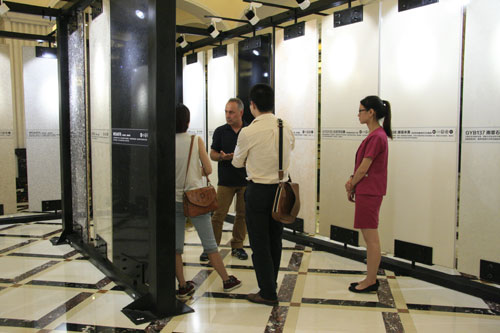 展廳不僅肩負(fù)著品牌形象樹立和宣傳的責(zé)任,更加重要的是讓客戶了解產(chǎn)品,為客戶提供材料選擇的參考。近期,石材展廳增加了大板展示區(qū),讓客戶更直觀了解產(chǎn)品效果以及便捷、快速的選材。