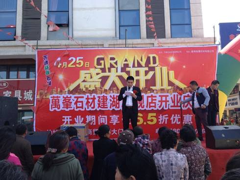 4月25日,江蘇建湖旗艦店及山西陽(yáng)泉旗艦店率先拉響了開業(yè)禮炮,為石材精彩的五一活動(dòng)打出響亮的一炮。