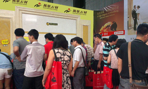 當(dāng)天石材一上臺(tái)就受到了業(yè)主們的熱烈歡迎,剛做完介紹就有許多業(yè)主前來(lái)咨詢下單。石材品牌在當(dāng)?shù)卦缫延辛己玫目诒,很多業(yè)主都是慕名而來(lái)。