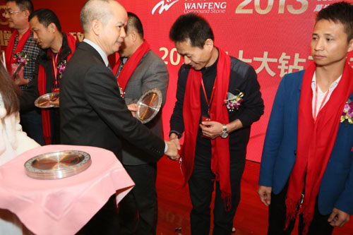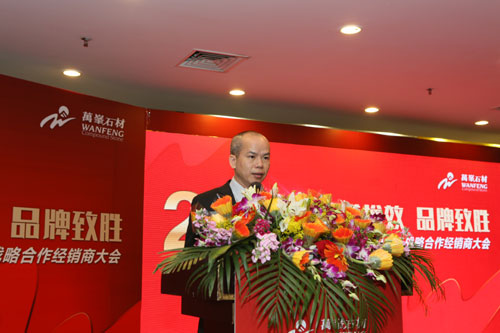 2013年2月26-27日,石材2013年戰(zhàn)略合作經(jīng)銷商大會在佛山華夏新中源大酒店隆重舉行。萬峰石材科技有限公司總裁林志偉先生,江南營銷總經(jīng)理鄭學(xué)龍先生,肇慶分公司總經(jīng)理張洪斌先生,生產(chǎn)廠長戶善文先生,總裁助理蔡華女士及來自全國各地的經(jīng)銷商代表、媒體代表共計500余人出席了此次盛會。會議圍繞“渠道增效、品牌致勝”主題展開,全面總結(jié)了2012年度的市場表現(xiàn),表彰了2012年度優(yōu)秀經(jīng)銷商,發(fā)布了2013年的新產(chǎn)品,并對2013年的市場戰(zhàn)略作了部署。