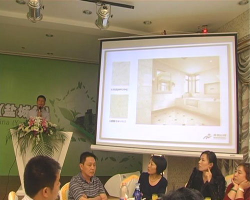 慶典結束后,朱總帶領各界嘉賓參觀工程案例鼎盛王朝酒店。嘉賓們親身感受到了石材在實際案例中的魅力,紛紛對石材在工裝中的完美應用贊不絕口!妒目臻g應用效果》的分享研討會更是讓嘉賓們對產(chǎn)品有了更全面更深刻的認識。