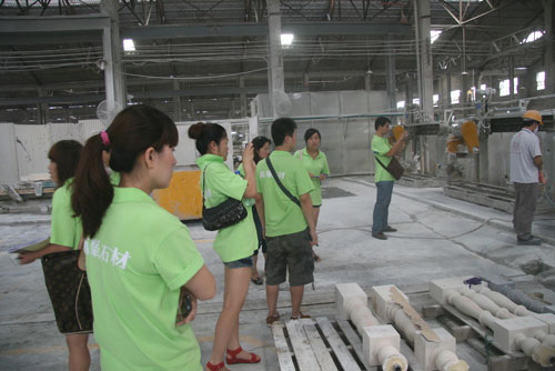 第二部分為的展廳與基地參觀,在技術(shù)人員的帶領(lǐng)下先后參觀了華夏展廳與順德生產(chǎn)基地,學(xué)員們親身感受了華夏展廳與基地展廳的各種裝飾風(fēng)格,對產(chǎn)品的裝飾應(yīng)用有了更直觀的了解。參觀基地的產(chǎn)品生產(chǎn)線時(shí),學(xué)員們與技術(shù)人員相互討論工序的疑點(diǎn),學(xué)習(xí)氛圍濃厚。
