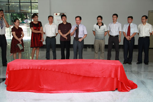 7月3日上午,廣州番禺職業(yè)技術(shù)學(xué)院圖書(shū)館大堂張燈結(jié)彩,一派歡聲笑語(yǔ)。石材捐助首屆新疆培養(yǎng)班紀(jì)念石凳儀式在這里隆重舉行。出席儀式的有學(xué)校領(lǐng)導(dǎo)、企業(yè)領(lǐng)導(dǎo)及廣大師生。儀式由新疆班班主任劉科江老師主持,首先由學(xué)生代表新疆班班長(zhǎng)阿班發(fā)言,他代表全體師生十分感謝石材的這一舉措,表示在畢業(yè)以后的崗位上勤奮工作,回報(bào)社會(huì)。