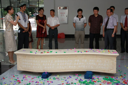 據(jù)了解,石材一直和相關(guān)高校有著良好的合作關(guān)系,在產(chǎn)品開(kāi)發(fā)、環(huán)保技術(shù)等方面開(kāi)展了多層次的產(chǎn)學(xué)研合作。廣州番禺職業(yè)技術(shù)學(xué)院的學(xué)生多次到公司參觀、實(shí)習(xí),目前石材已經(jīng)成為學(xué)校的一個(gè)重要校企合作基地。學(xué)校的首屆新疆培養(yǎng)班是援疆對(duì)口支援的重點(diǎn)項(xiàng)目之一,受到各級(jí)黨委政府的高度重視,培養(yǎng)班共有36名學(xué)員,學(xué)員全部來(lái)自新疆喀什地區(qū)疏附縣,在經(jīng)過(guò)一年半的學(xué)習(xí)后,于今年畢業(yè)。學(xué)員們?cè)诋厴I(yè)之際準(zhǔn)備送給學(xué)校一個(gè)禮物,留做紀(jì)念。石材知悉后,專門(mén)定制了一款紀(jì)念石凳,石凳長(zhǎng)2.4米,寬0.55米,流線型造型設(shè)計(jì),極富美感,上面刻有首屆新疆班的每一位師生的名字,了卻了學(xué)員們的一份心愿。