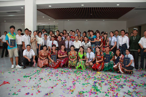 (公司領(lǐng)導(dǎo)與番禺技術(shù)學(xué)院領(lǐng)導(dǎo)及新疆班學(xué)生合影留念)