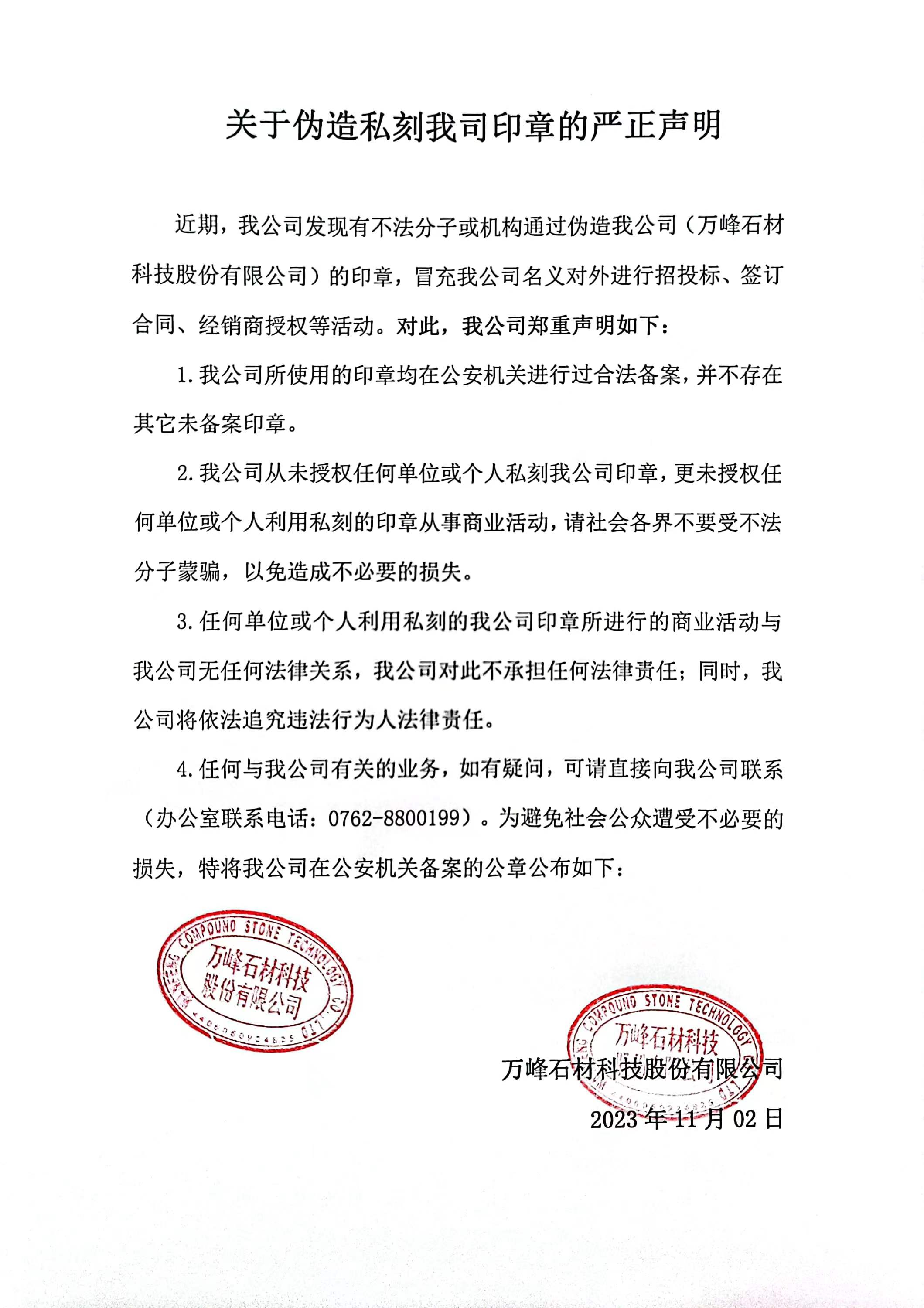 關(guān)于偽造私刻我司印章的嚴(yán)正聲明